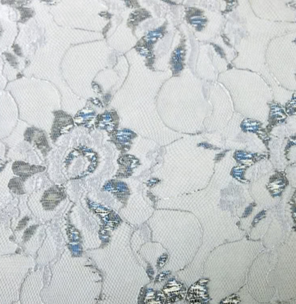 Pretty embroidery lace with a floral design and metallic thread that will glisten and shine under lights.